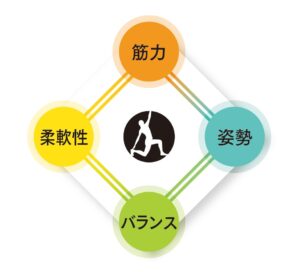 筋トレで筋力を鍛えることはもちろん大切ですが、張力を鍛えることはさらに重要です。なぜなら張力を鍛えれば、加齢とともに衰えていく4つの体力要素、筋力・柔軟性・バランス・姿勢を同時に鍛えることができるからです。その結果、人生100年動ける体を手に入れることができます。