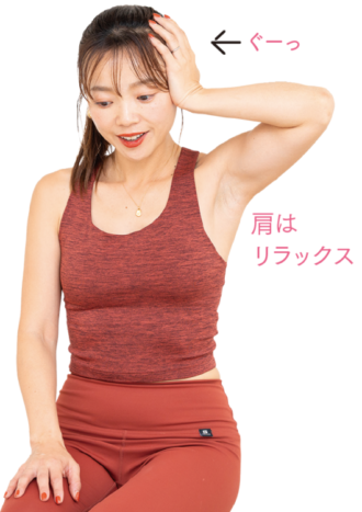 こめかみを手で押さえて力を入れ、頭の位置は動かさず、ぐーっと5秒間押し合います。