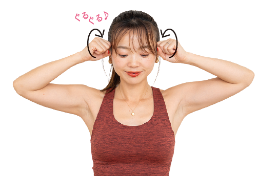 両手を握り、第2関節をこめかみに当て、ぐるぐる回します。